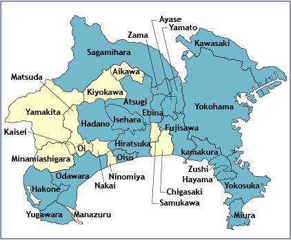 | Kanagawa Ken ("Ken" in Japanese means prefecture) is located