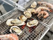 At Hinase Fishing Port, farmed oysters are landed in abundance from around November to March. At the fishery cooperative's fish market, Gomi-no-ichi, raw oysters are sold from November to March. There is also a seafood barbecue restaurant. Unique okonomiyaki named Kakioko filled with oysters, is known as B-grade gourmet food (Okonomiyaki is a Japanese-style pancake made from egg, flour and water with lots of toppings).