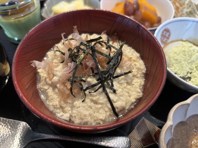 A dish made by mixing mashed tofu with soy sauce and dashi stock.