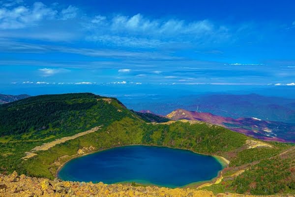 This is a crater lake on the mountainside of Mt. Issaikyozan in the Azuma