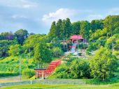 This Inari Shrine is characterized by its unique scenery, with numerous TORII Gates lined up on the grounds. Currently, there are about 100 torii gates, but in the past there were as many as 4,000. It is said to be good for praying for prosperity in business. The view from the top of the stone steps to the worship hall is spectacular. The Otaue Festival, a festival to pray for a bountiful rice harvest, is held every year from 1:00 pm on the first Sunday in June. Rice is planted by young maidens in the field in front of the first gate. They plant red rice seedlings, an ancient type of rice, accompanied by a shrine maiden dance.