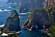 Peninsula in Miyako City, Iwate Prefecture. The surrounding rocks are the