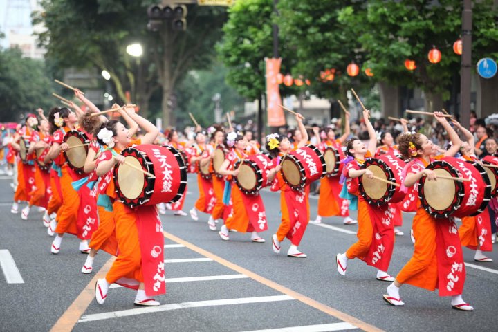 This festival takes place every year from August 1st to 4th. The "Sansa Dance", which has been passed down since the feudal era, is said to have originated when the villagers, in joy, danced to the tune of "Sansa, Sansa" after a god had defeated an ogre. The parades by each group generally consist of three parts: Taiko (drums), flutes, and dancing, but due to the large number of Taiko/drums used, it is also known as "Japan's No. 1 Taiko Parade", with well over 10,000 drums. Individuals can also join in the "Circle Dance" that takes place after the parade.