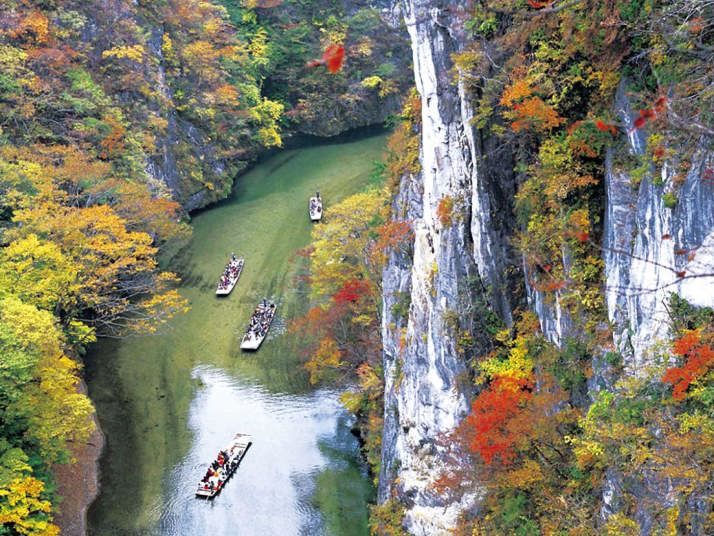 through GEIBIKEI Gorge, the boatman skillfully steers the boat through