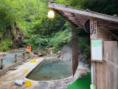 It is a hidden and small hot spring located in a valley on the mountainside, an hour's drive from the city center. Some say it was discovered in the 14th century, others say it was discovered in 856, so it is a hot spring with a long history. It is popular for its open-air baths that gush out from the river. Almost all of the dozen or so springs are artesian, and the water quality varies slightly. Day bathing is possible, but there are times when it is mixed bathing and for women only. It is located further back than Geto highland Ski Resort, known for its high-quality powder snow, and is only open from spring to autumn because it is closed in winter due to snow. Upstream of the hot spring is Tengu no Iwa, the largest travertine in Japan.