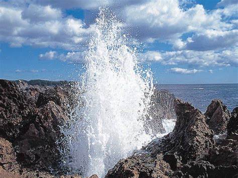 eruption can be seen every time waves crash into the rock. The nearby Ryu